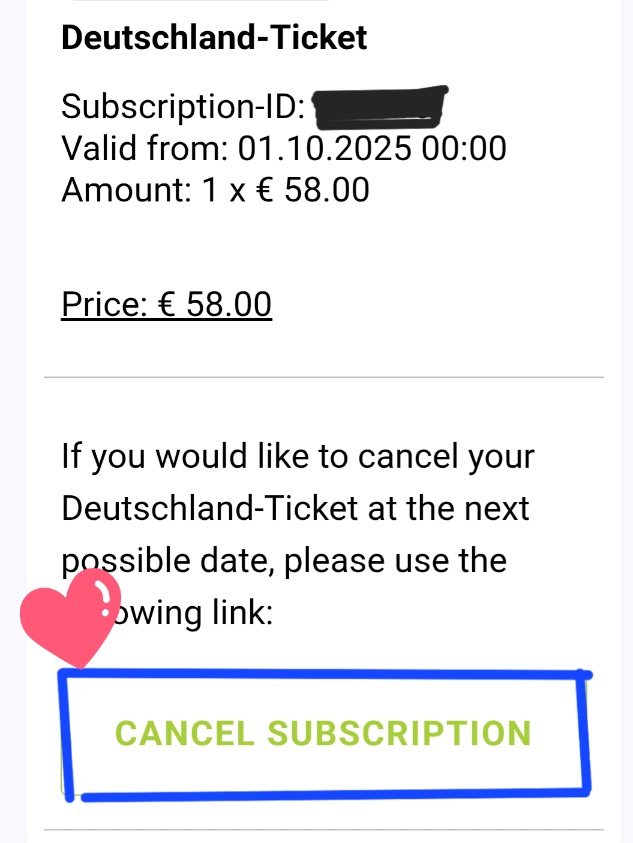 1) 도이칠란트 카드를 구입하면 구매했다는 메일과 구독 취소할 수 있는 메일이 옵니다.